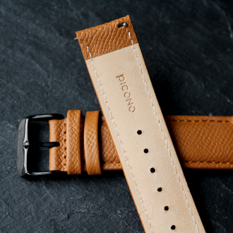真皮錶帶 - 棕色荔枝紋真皮錶帶-黑釦