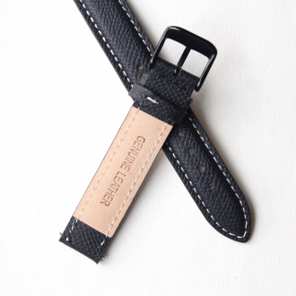 真皮錶帶 - 黑色荔枝紋真皮錶帶-黑釦