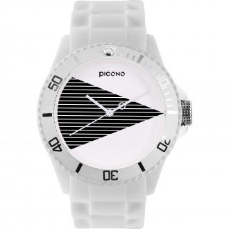 款式更新為有日窗設計 拿掉過多的色彩、裝飾與字釘,只有簡單的黑與白透過線條及幾何圖的交錯在對話,看似樸素卻傳達出錶面與錶針間不簡單的縱錯關係,讓我們一同掉入時間的派對裡吧!