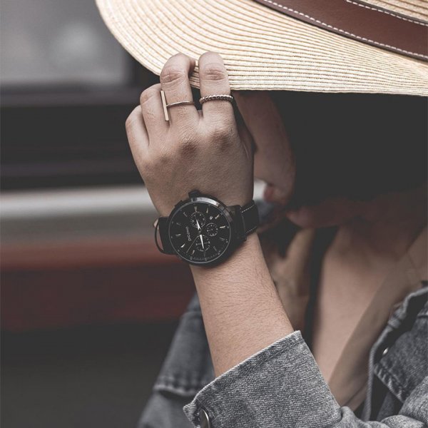 45mm大錶面真三眼D-Time系列有著霸氣的外表與扎實的重量,全錶殼均已不鏽鋼材質製造,錶帶選用真皮錶帶和進口日本機芯,男性配戴襯托自我獨特魅力,女性配戴展現帥氣個性的一面
