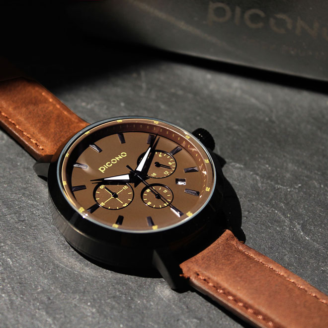 45mm大錶面真三眼D-Time系列有著霸氣的外表與扎實的重量,全錶殼均已不鏽鋼材質製造,錶帶選用真皮錶帶和進口日本機芯,男性配戴襯托自我獨特魅力,女性配戴展現帥氣個性的一面